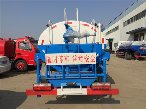 4、客戶購買灑水車時,可以根據(jù)實際需要要求提高后噴灑噴嘴的設置高度,以擴大后噴頭的灑水寬度,在灑水場合的小范圍內(nèi)還可以直接用單噴頭完成灑水作業(yè),帶來更加優(yōu)秀的壓塵、降溫效果。