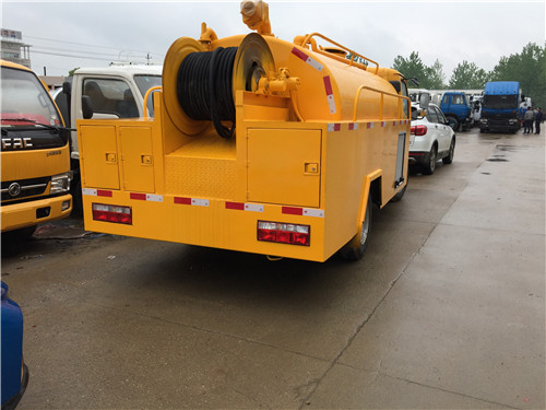 高壓清洗吸污車罐體是污罐的主體,其頂部開設有空氣孔,吸排孔??諝饪着c水氣分離器相通是空氣出入罐體的通道。入孔平時密封著維修時可以打開,吸排孔上連吸污膠管下連虹吸道污液出入罐體的通道。