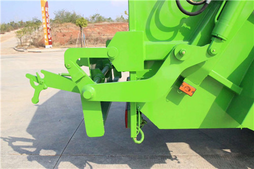 ④密封處理消除二次污染 垃圾在壓縮裝填和運輸過程中處于封閉狀態(tài)。垃圾箱與填裝器接合面裝有特制的橡膠密封條,采用鎖緊裝置壓縮密封;污水箱上安裝有獨特的排污閥,密封可靠,不易堵塞。填裝器蓋選裝完全遮蓋住填裝器投料口,消除轉(zhuǎn)運過程車尾氣流擾動造成垃圾塵屑飛揚的現(xiàn)象,外觀更加美觀。