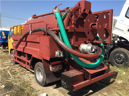 吸污罐體優(yōu)質(zhì)碳鋼板采用5-6mm厚,水罐罐體厚度為4mm厚,高壓泵為德國品浮,億豐真空油泵或山東美卓SK6水循環(huán)泵,水油分離器,防溢閥,洗手裝置,多路換向閥,真空壓力表,視污窗或視污管,罐體后部出口為100球閥,或150球閥,罐體可液壓舉升,后蓋可液壓打開,吸污管8米。 高壓清洗管60米 帶卷盤。