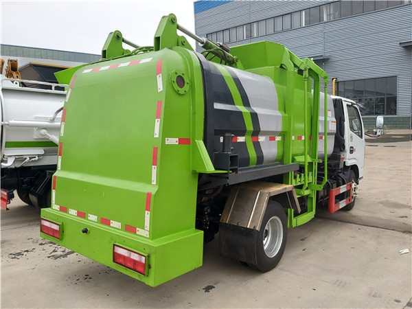 當(dāng)然,污水最終要從這一臨時空間中排除,不能在廂體前部積垢,則要求推板與廂體底板之間留有合適的間隙,通常為20mm左右,可以保證污水區(qū)的污水能夠緩慢流出。廂體設(shè)計通常使廂體底板與車架留有1°~3°的夾角,裝載垃圾時,夾角的存在可以使污水緩慢流向污水箱(前提是污水箱還有空間)。要讓污水能流人污水箱,通過結(jié)構(gòu)設(shè)計能夠滿足要求,與貼合面密封膠條不存在必然的關(guān)系。