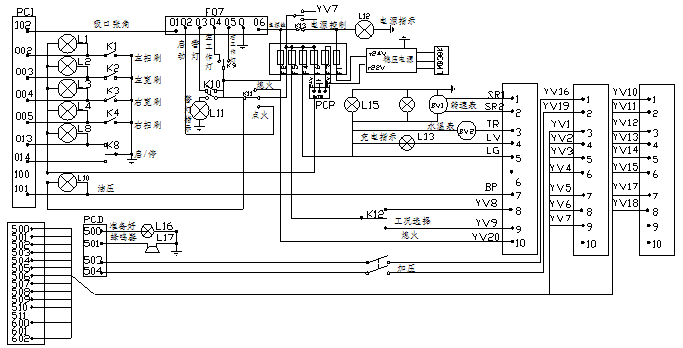 電氣電控系統(tǒng)由控制箱、可編程序控制器(即PC機(jī))及各種控制、顯示、報(bào)警、照明等電路組成。由于