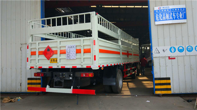 東風(fēng)天錦小三軸8.6米氣瓶運(yùn)輸車采用東風(fēng)天錦前四后四底盤,也叫東風(fēng)天錦前四后四氣瓶運(yùn)輸車,該車采用康明斯210馬力發(fā)動機(jī),整車尺寸(11.1米*寬2.55米*高3.04米),廂體內(nèi)尺寸長8.6米*寬2.45米*高0.8米,采用倉欄式結(jié)構(gòu),該車為危險品貨物運(yùn)輸車,用于運(yùn)輸具有獨立容器(瓶)包裝的易燃?xì)怏w(罐(瓶)裝壓縮氫、液化石油氣),類項號為2.1,和非易燃無毒氣體(罐(瓶)裝二氧化碳,氧氣,氮氣,氬氣),類項號為2.2。