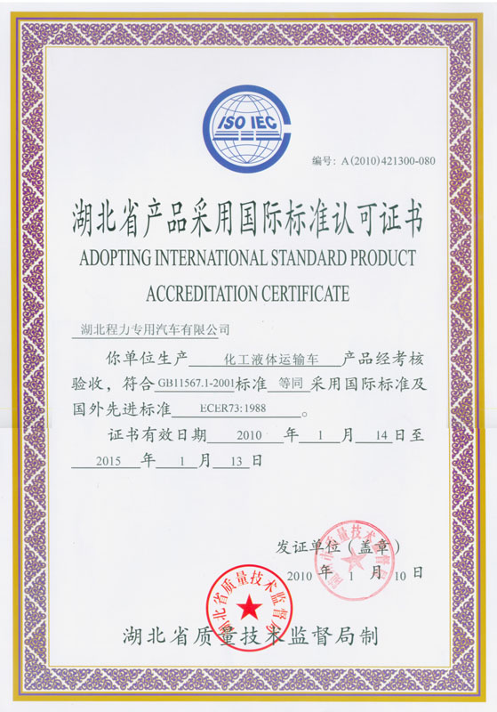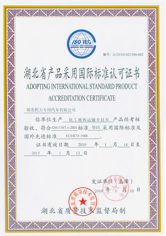化工液休運輸車認(rèn)可證書 化工液體運輸半掛車認(rèn)可證書