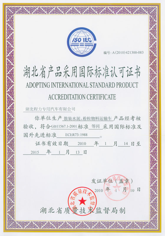 散裝水泥、粉粒物料運輸車認(rèn)可證書 灑水車認(rèn)可證書
