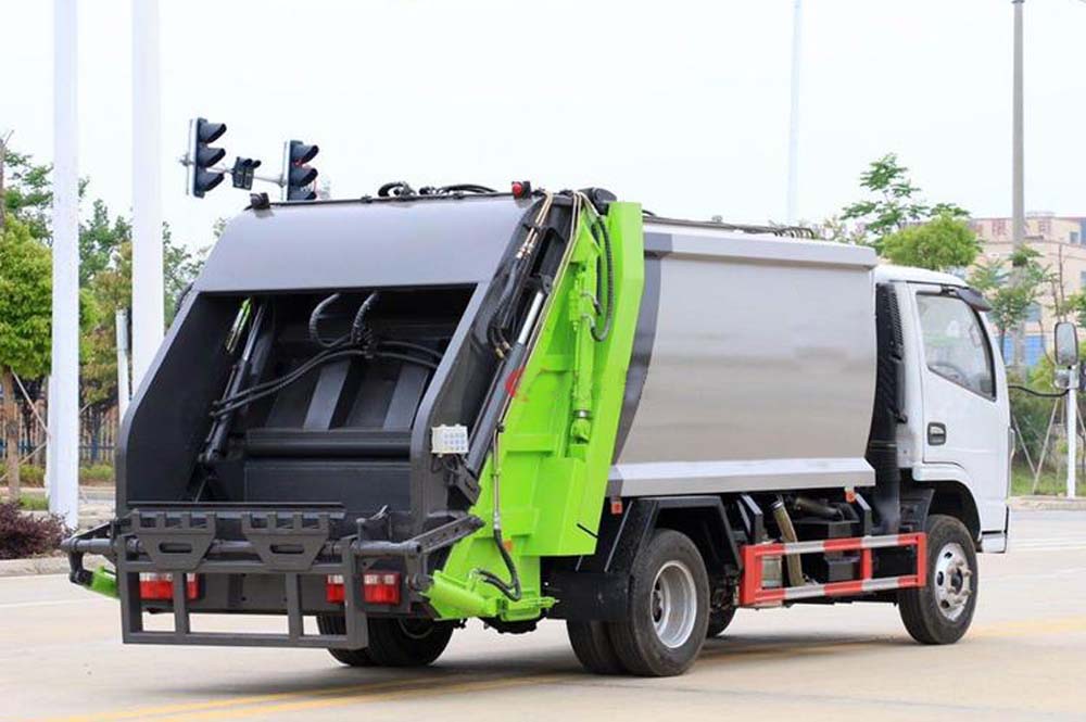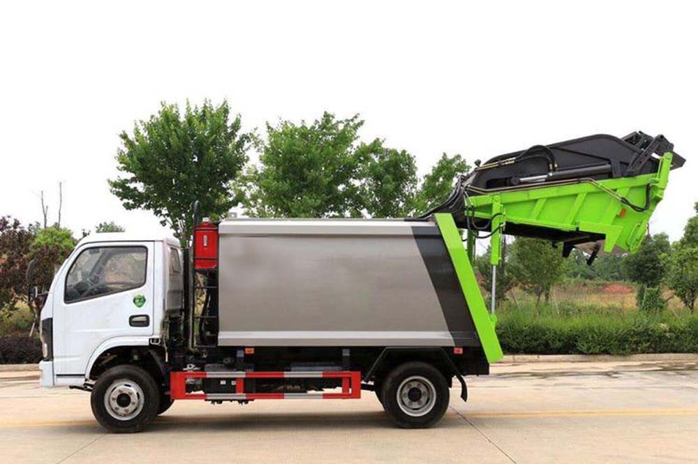二、上裝配置: 新款平板或弧形箱體,式樣美觀,箱體全滿焊,5-8方箱體厚度邊4底4,10-12方邊4底5,12方以上邊5底5,采用國內(nèi)著名品牌配件,揚(yáng)州中煤或合肥長源油泵和液壓多路換向閥、博利或海普瑞斯油缸,杰特高密度液壓油管,帶掛桶或三角斗翻轉(zhuǎn)進(jìn)料,翻轉(zhuǎn)機(jī)構(gòu)可以翻轉(zhuǎn)國標(biāo)120、240垃圾桶,帶壓縮推板,后蓋帶液壓鎖緊。PLC一鍵操控系統(tǒng),可駕駛室內(nèi)和室外雙電控操作,方便實(shí)用。尾部帶密封橡膠墊,污水收集箱,可防污水滴漏二次污染。