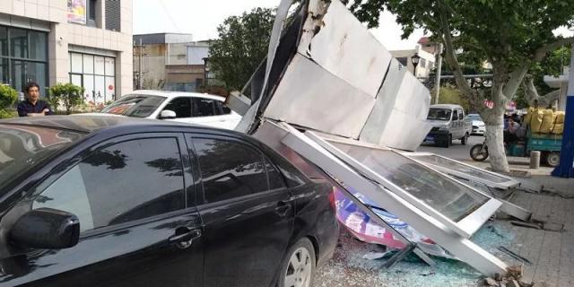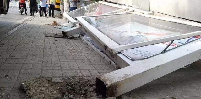 洗掃車司機(jī)說:“我每天都開車沿魏武大道東側(cè)的非機(jī)動車道清掃,但今天下午3點(diǎn)鐘左右,因?yàn)槎惚芤惠v三輪車,無意間撞倒了站臺上的棚頂,而且旁邊停放的這輛黑色私家車也被砸壞。”