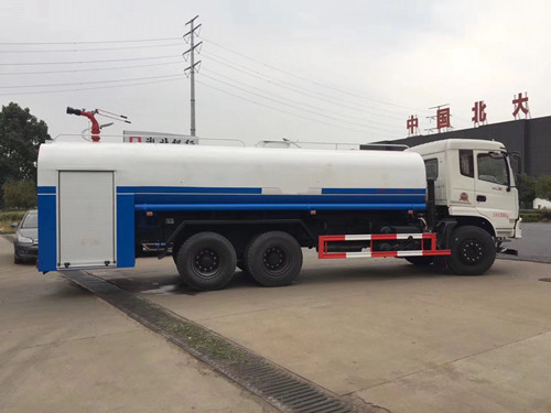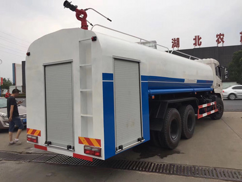 保定用戶購(gòu)置15噸東風(fēng)T5保溫運(yùn)水車帶灑水車發(fā)車,該車夏季用戶綠化噴灑使用,而且駕駛室前置電動(dòng)灑水炮,冬季用來(lái)運(yùn)輸熱水,一車多功能。