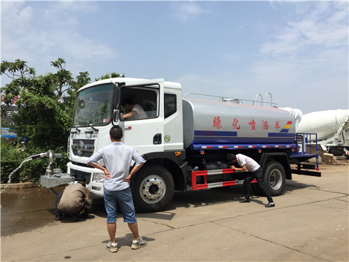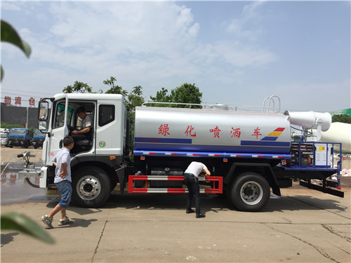改裝配置:罐體用4MM碳鋼板制作,罐內(nèi)隔板具有防波作用,以減低汽車行駛時(shí)罐體液體的沖擊。整車帶一個(gè)專用灑水泵(垂直最大吸程6米),灑水寬度14米,射程28米。多功能灑水車配備2個(gè)前沖(噴)(能將路面泥巴、塵土、垃圾沖干凈);2個(gè)后灑(能均勻地將水灑在路面,一次灑水寬度14米)、2個(gè)側(cè)噴(花灑)(能均勻地將路旁綠化帶澆灌)、帶1個(gè)后工作平臺(tái),平臺(tái)上安裝1個(gè)綠化灑水高炮(灑水炮可全方位旋轉(zhuǎn),可連續(xù)調(diào)成直沖狀、大雨、小雨、毛毛雨,霧狀可調(diào)節(jié)沖洗高大樹木),引水時(shí)間<5min,流量90m3/h。帶1個(gè)消防接頭,帶1個(gè)自流閥,1個(gè)過(guò)濾裝置、人性化爬梯及側(cè)防護(hù)欄,安裝灑水音樂(lè)喇叭。