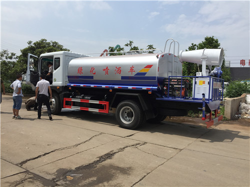 灑水車的工作平臺主要采用花紋防滑板制作而成,防滑板的厚度5毫米,平臺是寬度50-70公分,高度60-80公分,主要是便于工作人員安全操作而設計的尺寸,另外工作平臺上還設計的有腳踏板,便于工作人員上下,平臺上面安裝的綠化灑水炮,主要用于路面沖洗,園林綠化,以及應急消防。綠化灑水炮的工作狀態(tài),可以360度旋轉,射程30米左右,可以調節(jié)成大雨、小雨、毛毛雨和柱狀。后灑裝置主要用于路面養(yǎng)護,噴灑寬度15米左右。側噴主要用于公路綠化帶噴灑綠化。