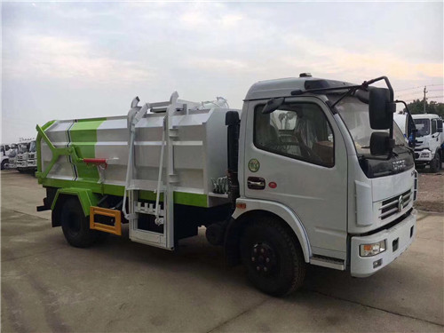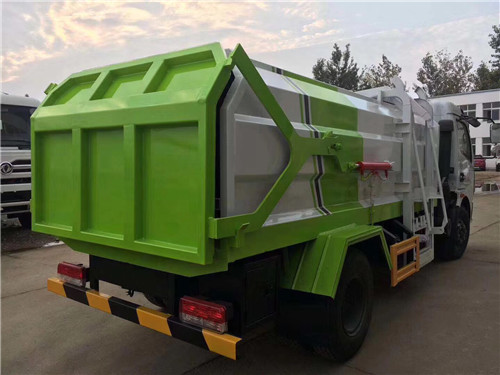 另外側(cè)裝垃圾車與壓縮式垃圾車的結(jié)構(gòu)體為:推板壓縮,掛桶側(cè)裝,垃圾站對接,垃圾自卸裝置。通過拉桿提升垃圾桶自動倒入垃圾,并往車廂后方推動擠壓垃圾,達(dá)到壓縮垃圾的目的,壓縮原理是采用機(jī)、電、液壓聯(lián)動控制系統(tǒng)、電腦控制及手動操作系統(tǒng),通過填裝器和推鏟等裝置實現(xiàn)垃圾倒入,壓碎或壓扁,并將垃圾擠入車廂并壓實和推卸;從而實現(xiàn)對接壓縮垃圾車塊轉(zhuǎn)運運輸功能等。