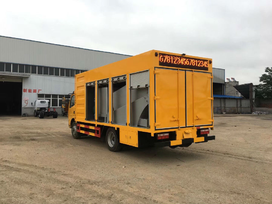 污水處理車是在二類載貨汽車地盤的基礎(chǔ)上加裝貨箱、分離箱、藥箱、取力器、真空泵、排污泵、凸輪轉(zhuǎn)子泵、疊螺機、LED廣告宣傳屏等專用裝置改裝而成。該車結(jié)構(gòu)簡單、性能可靠、操控方便,可對化糞池快速處理。