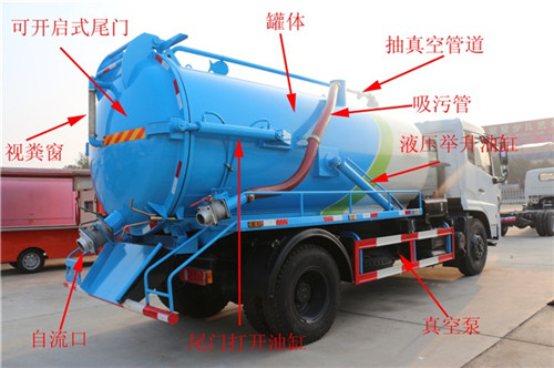 而吸污車排放流動(dòng)性較差的淤泥時(shí),可以升舉罐體,打開后蓋,直接將罐體內(nèi)淤泥傾倒干凈。整個(gè)過程迅速快捷。