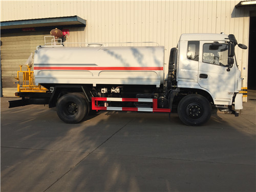 東風(fēng)多利卡5方灑水車,朝柴73KW柴油發(fā)動機(95馬力),7.00-16尼龍?zhí)ィ瑸⑺囻{駛室顏色白色,自吸自排灑水泵,前沖,后灑,側(cè)噴,高位花灑,后平臺灑水炮,水罐容積5立方,2根罐體等長抽水管,一個消防接口,一自流口。