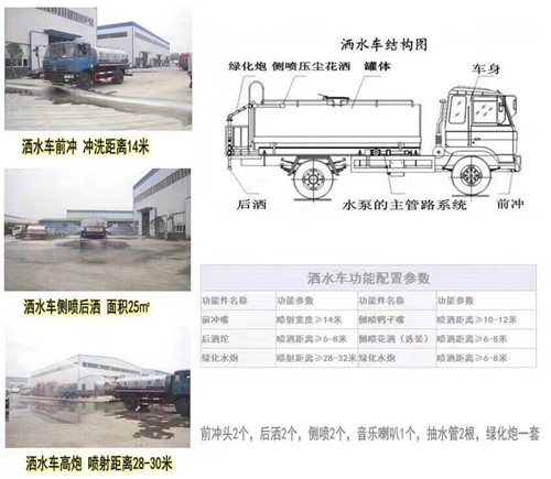 福田灑水車、綠化噴灑車專用功能:綠化環(huán)衛(wèi)多功能,適合于城市小區(qū)工廠的綠化環(huán)衛(wèi)用,采用全國質(zhì)量領(lǐng)先的大功率專用灑水泵。前沖(噴)后灑、帶側(cè)噴(花灑)、帶后工作平臺、平臺上安裝綠化灑水高炮(炮有大雨、中雨、毛毛雨、霧狀可調(diào)節(jié)),帶吸水管,帶消防接頭,帶自流閥,自吸自排,可選配20米綠化噴藥卷盤、高空作業(yè)、隨車吊貨運(yùn)等功能。