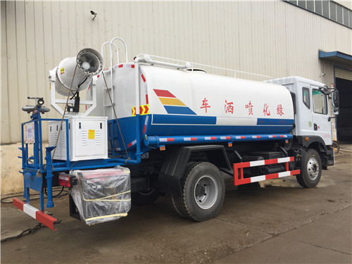 灑水車標準配置和選裝配置,有前沖、后灑、綠化澆灌、遠程水炮等裝置。采用輕質(zhì)的鋁合金材料,并設(shè)置有多重安全防護裝置與報警系統(tǒng)。灑水車罐體采用4毫米Q235碳鋼一次鑄造成型,罐體容積12立方。