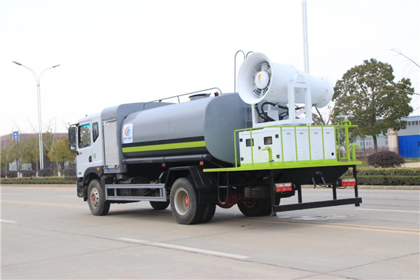 灑水車罐體厚度為十足十量4MM,自吸高度大于等于7m,前沖后灑射程大于14米,揚塵大于22米。灑水車采用上海合資消防泵,揚塵最大可達到50米。