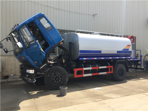 灑水車(chē)貯水箱設(shè)有排污管,該管的進(jìn)口為水箱的最低點(diǎn)。顛終一段時(shí)間的利用,應(yīng)按期翻開(kāi)排污管開(kāi)關(guān),將罐內(nèi)積壓的雜物解除,直到水變清為止。