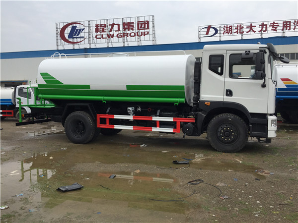 客戶是河南省公路建設公司,買來灑水車主要是工地上使用,固選擇的15噸大型灑水車,雖是不上牌車型,還是建議客戶選擇馬力大、承載力強的東風153底盤,康明斯190馬力,在工地上使用那是杠杠的。輪胎是1000尼龍?zhí)?,路況不好的路面,承載力也比較強。