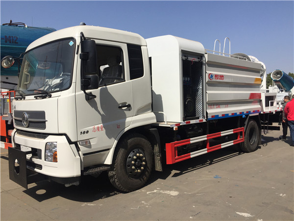 本車具有獨(dú)立的高、低壓兩套水路系統(tǒng),為抑塵車工作提供壓力水源。其工作原理是:利用高壓水泵產(chǎn)生的高壓水,經(jīng)噴水架的高壓噴嘴噴出,利用高壓水流的動(dòng)能,以高壓力、低流量的方式抑塵,超遠(yuǎn)射程,高效節(jié)水,能將路面的陳舊污漬抑塵干凈;或高壓水經(jīng)左(右)角噴噴出,清洗路緣、人行道及護(hù)欄隔離區(qū);使用高壓噴槍還可抑塵路標(biāo)、廣告牌、高架路等;噴霧系統(tǒng)具有強(qiáng)大的噴霧降塵、噴撒空氣消毒劑及調(diào)節(jié)空氣濕度功能。