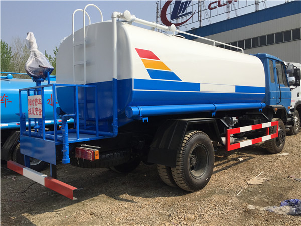 10噸東風灑水車底盤采用東風大多利卡(十堰產),3800mm軸距,帶動轉,7.5尼龍?zhí)ィ瑲鈩x,電子熄火。前沖后灑,后工作平臺帶高炮,右位花灑,側噴。罐體9.2噸,金龍泵,前沖后灑,后工作平臺帶高炮,右位花灑,側噴。