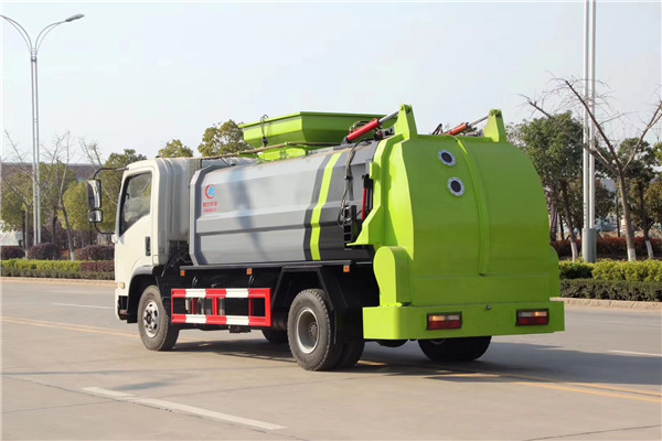 餐廚垃圾車由密封式垃圾廂、液壓系統(tǒng)、操作系統(tǒng)組成。整車為全密封型,自行壓縮、自行傾倒、壓縮過程中的污水全部進(jìn)入污水廂,較為徹底的解決了垃圾運輸過程中的二次污染的問題,避免了給人們帶來不便,關(guān)鍵部件采用進(jìn)口部件,具有壓力大、密封性好、操作方便、安全等優(yōu)點。 可選配后掛桶翻轉(zhuǎn)機(jī)構(gòu)或垃圾斗翻轉(zhuǎn)機(jī)構(gòu)。