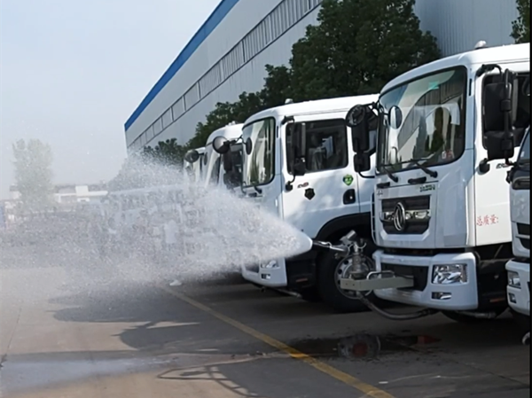 4、灑水車水炮。是安裝在灑水車工作平臺上的噴灑設施,可以將噴出去的水呈現(xiàn)出毛毛雨壯,水柱壯,霧狀,可根據自己的需要調節(jié)成不同的形狀。